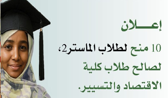 يُعلن كرسي الاقتصاد النقدي، ثمرة الشراكة بين البنك المركزي الموريتاني (BCM) وكلية الاقتصاد والتسيير (FEG) بجامعة نواكشوط، عن فتح باب الترشح لمنح (10 منح تميّز) موجهة لطلبة الماستر 2 المسجلين بالكلية.