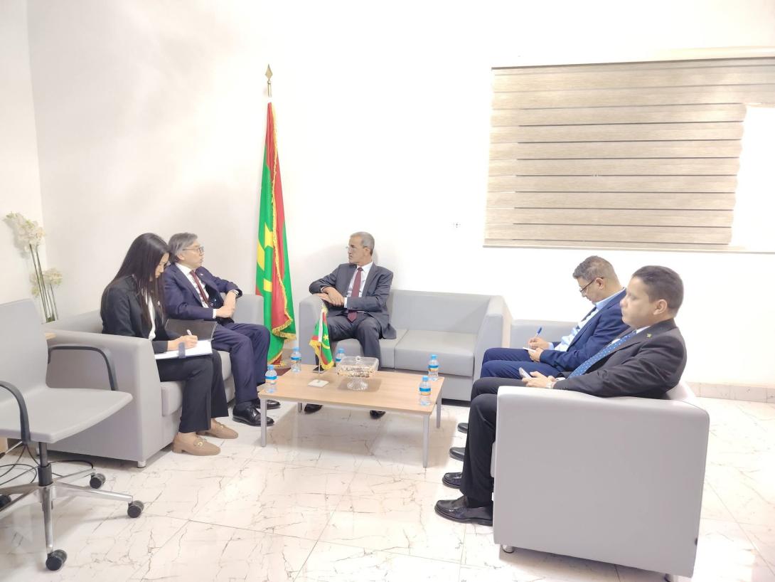 وتناولت المباحثات آفاق تطوير الشراكة بين موريتانيا واليابان، واستكشاف فرص الاستثمار في القطاع المعدني، إلى جانب بحث سبل تعزيز التعاون الفني وتبادل الخبرات بما يخدم التنمية الصناعية في البلاد.