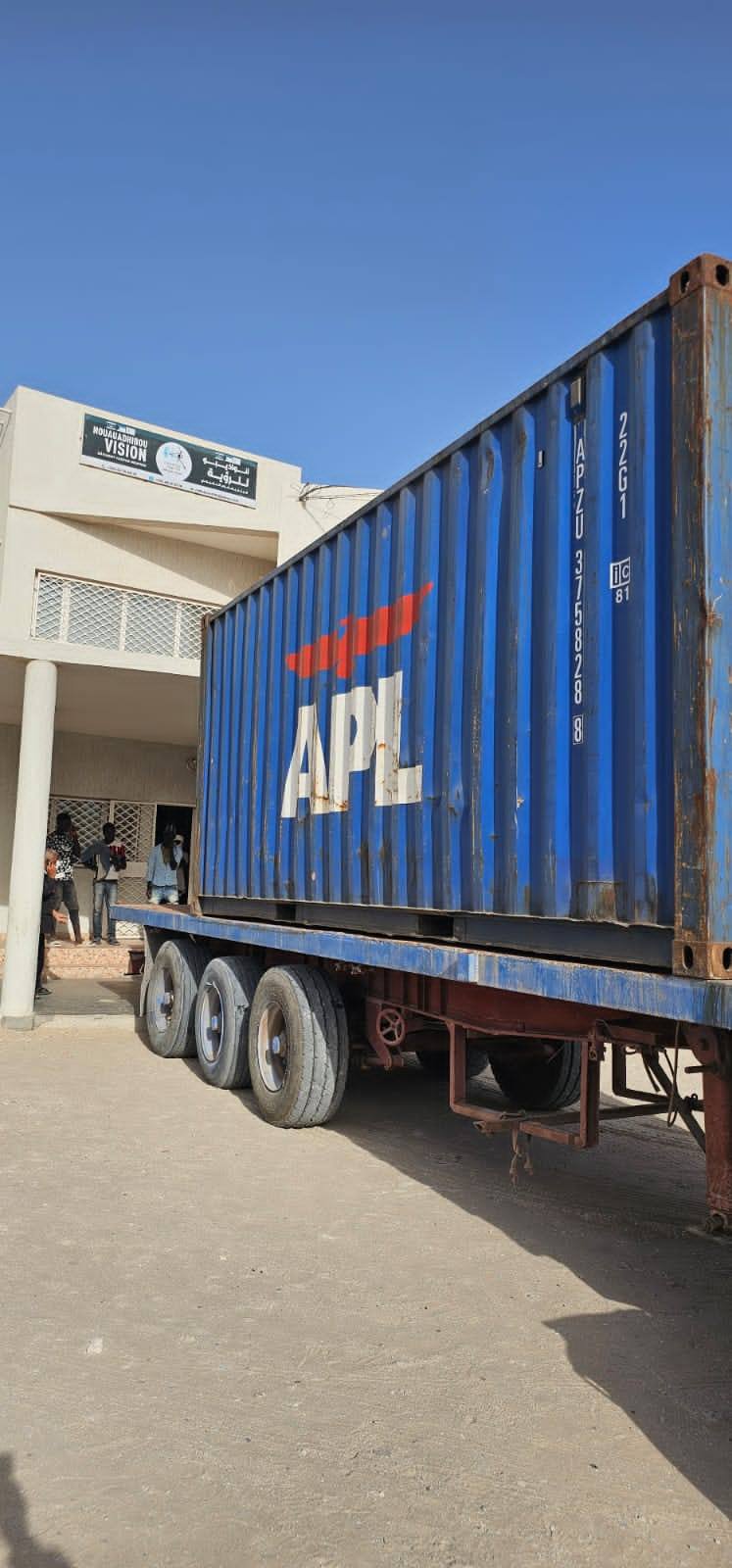 وصلت حاوية من التجهيزات والمستلزمات الطبية، المركز الكويتي لطب العيون بمدينة نواذيبو."