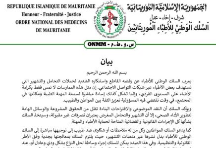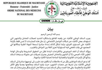 انتقد السلك الوطني للأطباء ماوصفها بحملات التحامل والتشهير التي تستهدف بعض الأطباء عبر شبكات التواصل الاجتماعي.