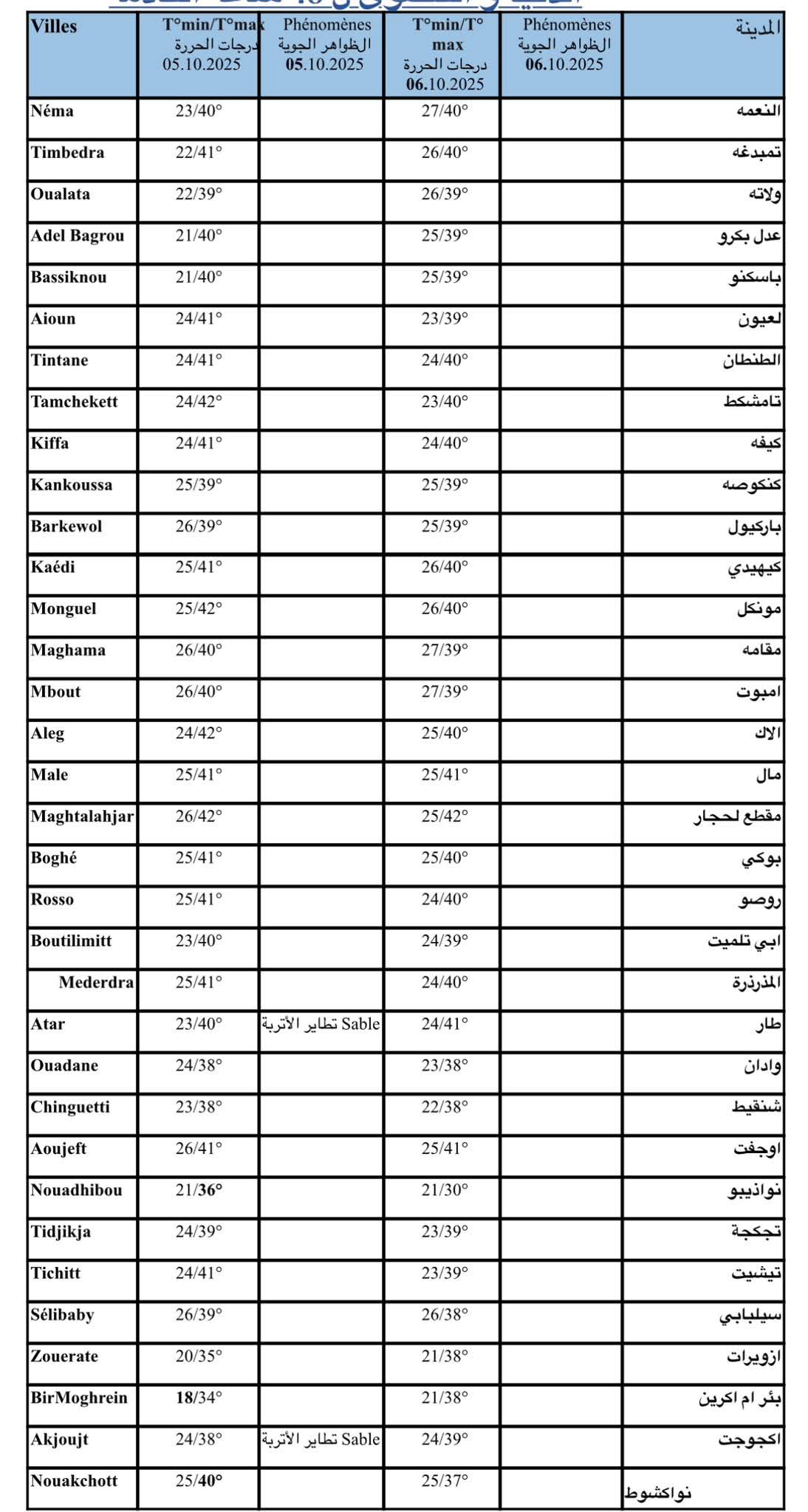 وأكدت أن الرياح ستكون ضعيفة الي معتدلة شمالية شرقية الي شرقية علي عموم البلاد مع رؤية متأثرة بفعل الأتربة علي ادرار و انشيري.