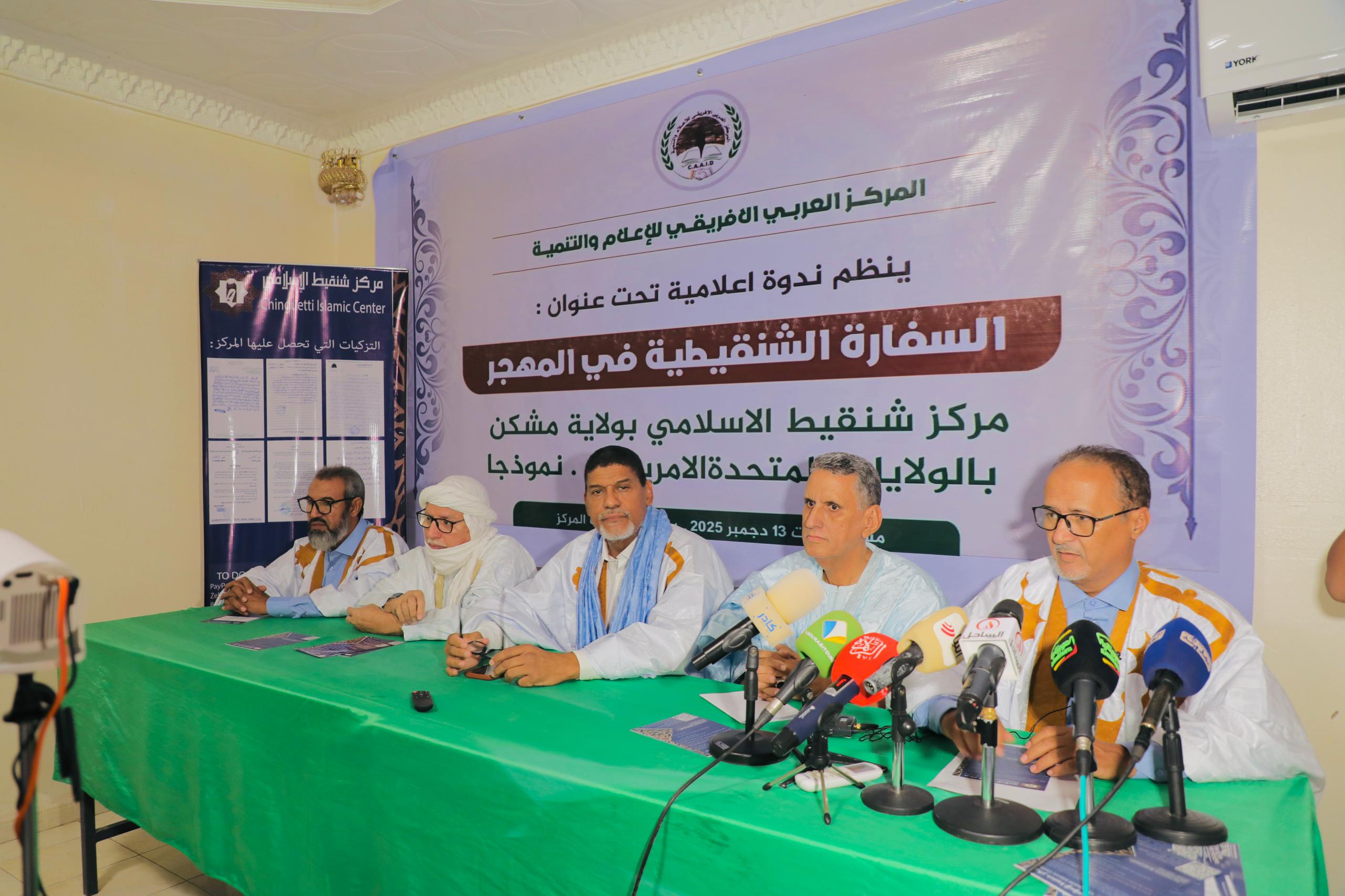احتضن المركز العربي الافريقي للاعلام والتنمية مساء امس في مقره، ندوة اعلامية تحت عنوان(السفارة الشنقيطية في المهجر :مركز شنقيط الاسلامي في ولاية ميشكن بالولايات المتحدة الأمريكية نموذجا).