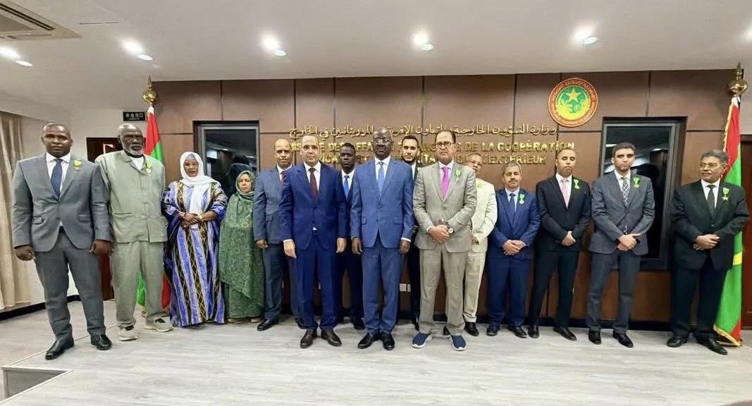 قام وزير وزارة الخارجية والتعاون الإفريقي والموريتانيين في الخارج، محمد سالم ولد مرزوك، اليوم الجمعة، بتوشيح عدد من المسؤولين والموظفين خلال الاحتفال بالذكرى الخامسة والستين لعيد الاستقلال الوطني في موريتانيا.