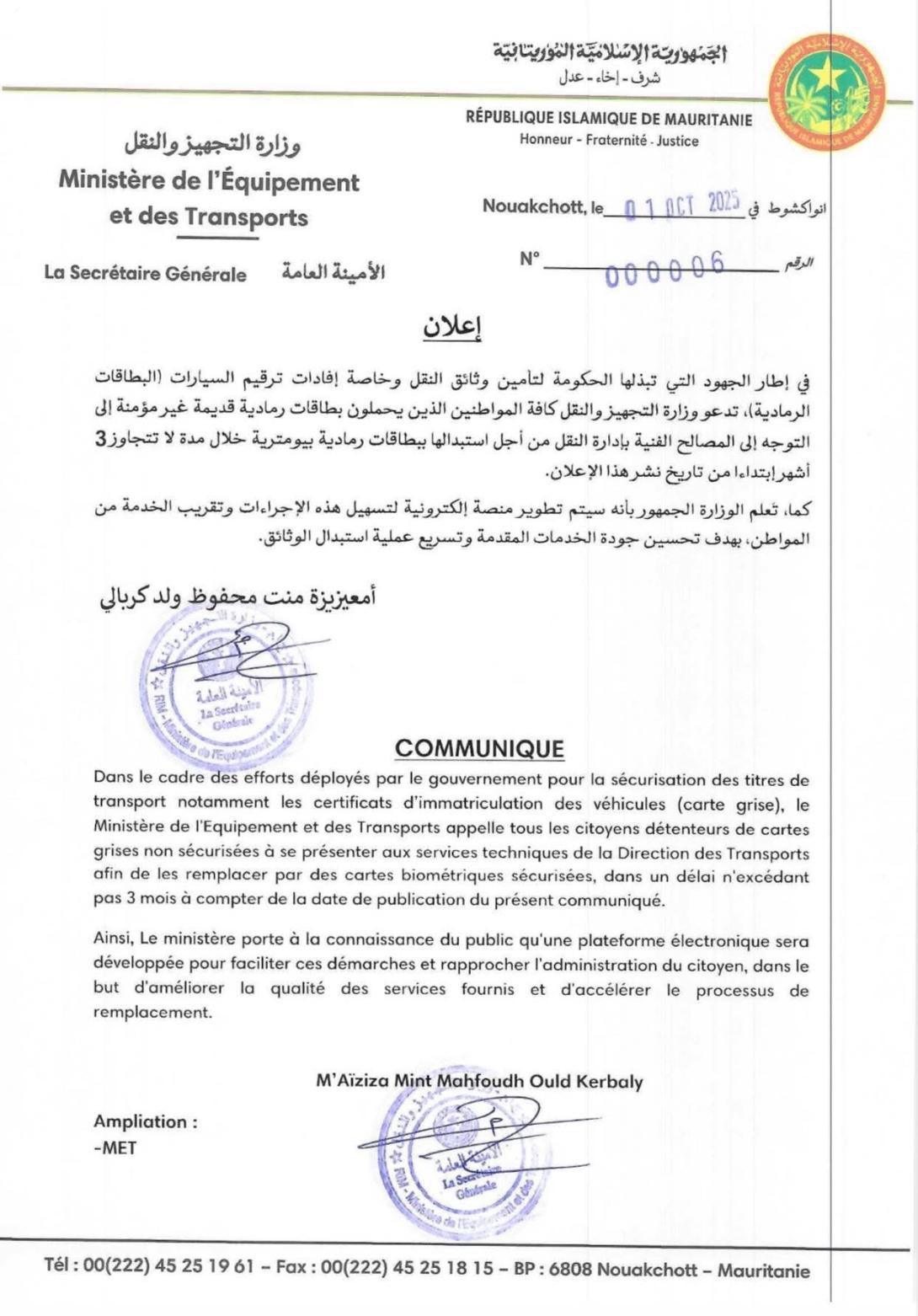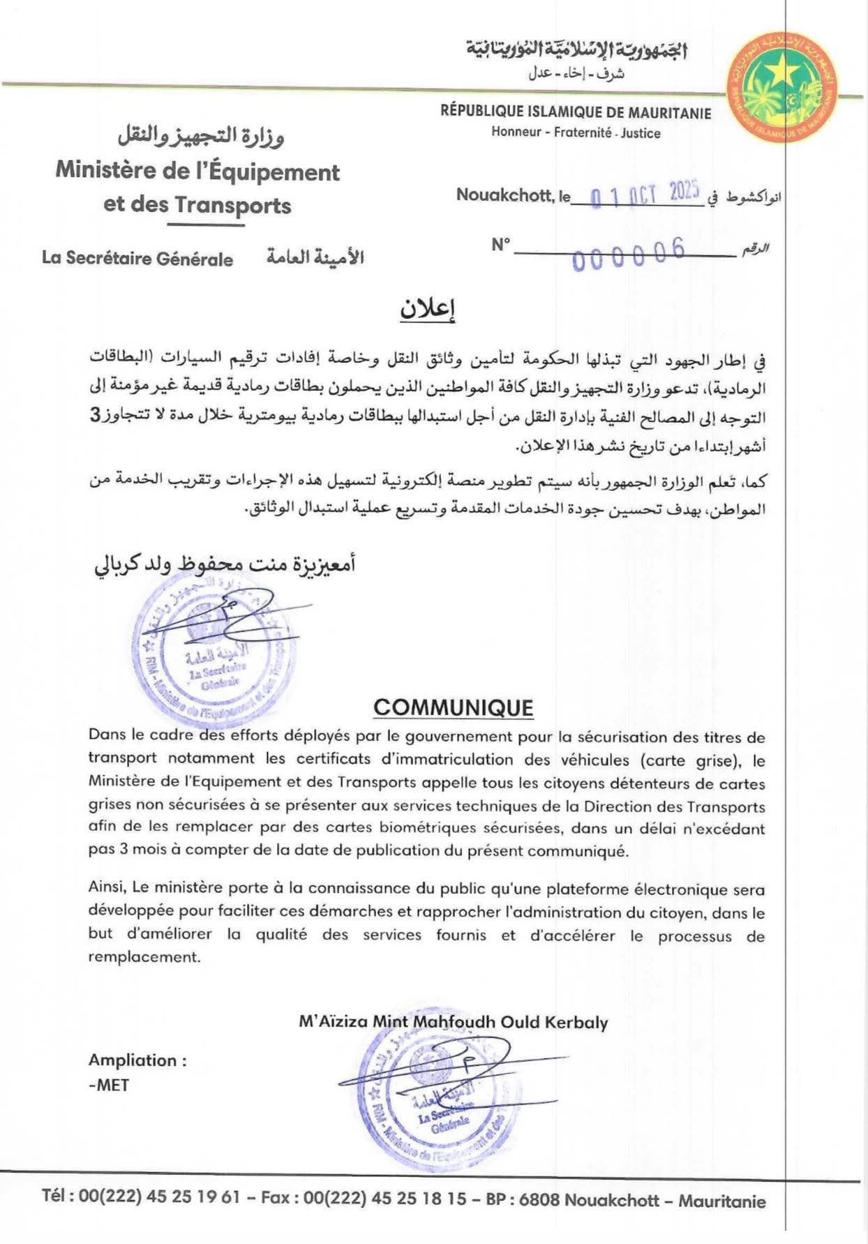 دعت وزارة التجهيز والنقل كافة المواطنين الذين يحملون بطاقات رمادية قديمة غير مؤمنة إلى استبدالها ببطاقات رمادية بيومترية