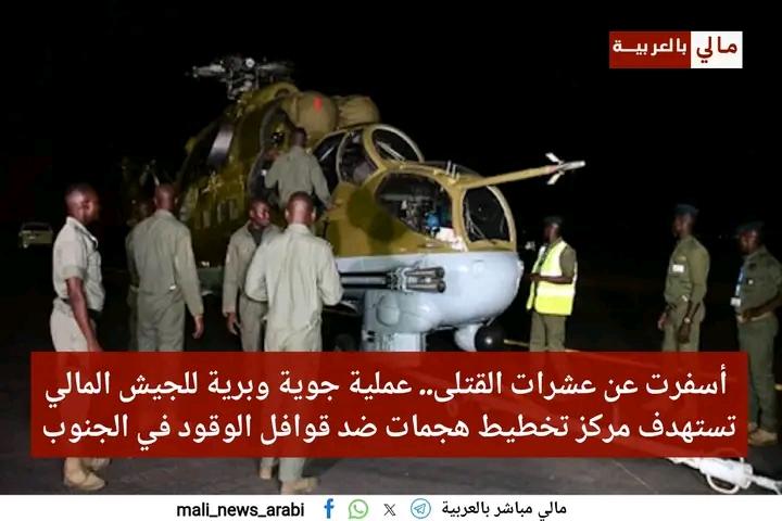 أعلنت القوات المسلحة المالية عن تنفيذ عملية عسكرية جوية وبرية واسعة استهدفت قاعدة تابعة لجماعات مسلحة قرب بلدة كولوندجيبا في إقليم بوغوني، أسفرت عن تحييد عدد من المقاتلين وتدمير منشآت ومعدات كانت تستخدم في تنفيذ هجمات ضد القوافل التجارية.