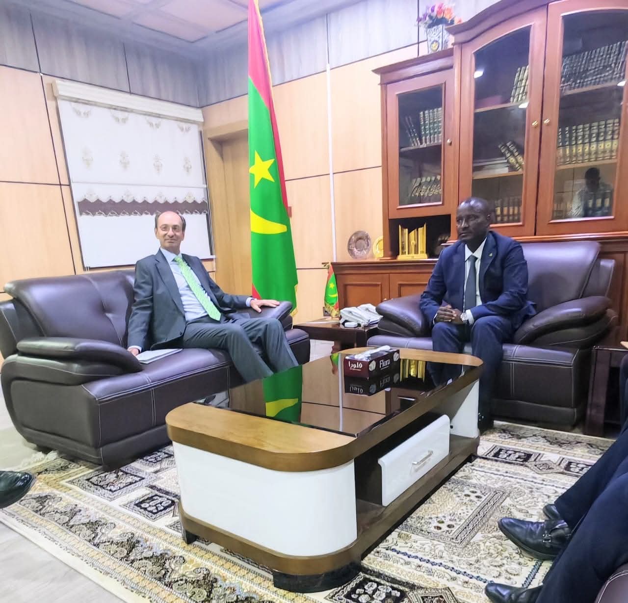 أجري وزير العدل محمد ولد اسويدات اليوم الثلاثاء بمكتبه مباحثات مع سفير إسبانيا المعتمد في موريتانيا ابلو باريرا غوميز